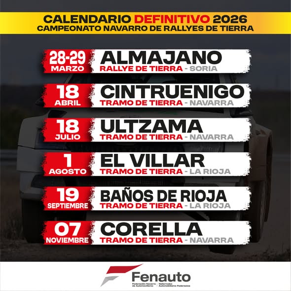La prueba cerrará el calendario oficial 2026 junto a citas en Navarra, La Rioja y Soria El Campeonato Navarro de Rallyes de Tierra 2026 ya…