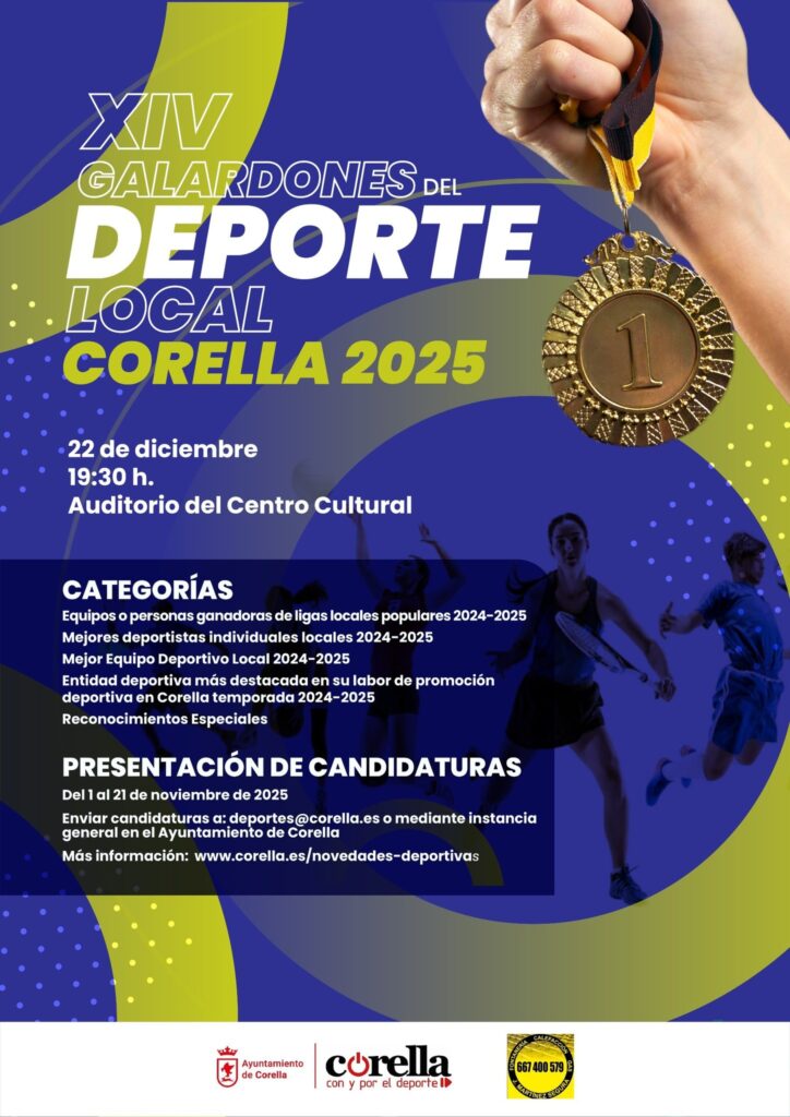 El deporte corellano volverá a ser protagonista este mes de diciembre con la celebración de los XIV Galardones del Deporte Local de Corella 2025, un evento que rendirá homenaje al esfuerzo, la dedicación y los logros de deportistas, clubes y entidades que han contribuido a impulsar la actividad deportiva en la ciudad.