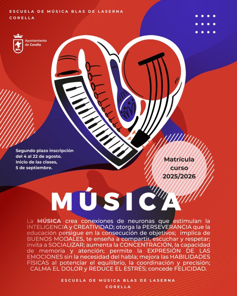 Este centro, dependiente del Ayuntamiento de Corella, continúa consolidándose como una referencia educativa y cultural en la localidad, ofreciendo formación musical a todas las edades y niveles. El nuevo curso se presenta con una oferta variada, centrada en el desarrollo integral del alumnado a través de la práctica musical, el conocimiento instrumental y la participación activa en agrupaciones.