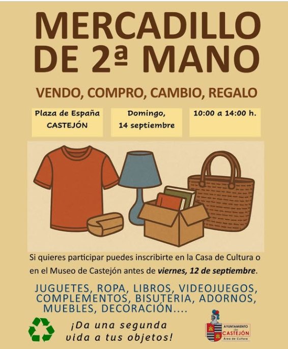 Con este mercadillo, Castejón apuesta por fomentar el consumo responsable, la reutilización y el reciclaje, promoviendo un encuentro vecinal donde la sostenibilidad y la economía circular son protagonistas.