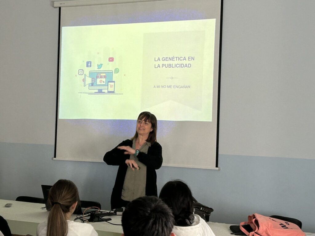Este miércoles 8 de enero ha tenido lugar la charla: «La genética en la publicidad: a mi no me engañan» para el alumnado de 1º y 2º de Bachillerato de Ciencias de la Salud. La ha impartido Maribel Zudaire que imparte docencia en los estudios de los Grados de Magisterio de Infantil y Primaria, y en el Master Universitario en Profesorado de Educación Secundaria.