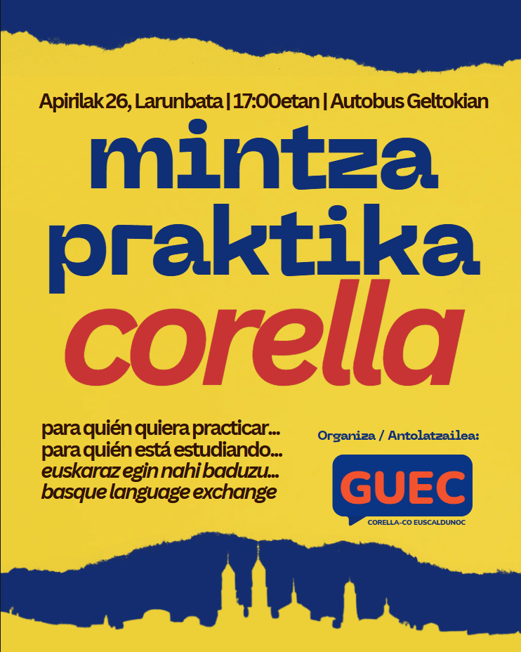 El encuentro está organizado por GUEC – Corella-ko Euscaldunoc, un grupo local comprometido con la promoción y el uso del euskera en la localidad ribera. La iniciativa está pensada como un espacio distendido para practicar el idioma de forma natural y en grupo, sin importar el nivel previo.