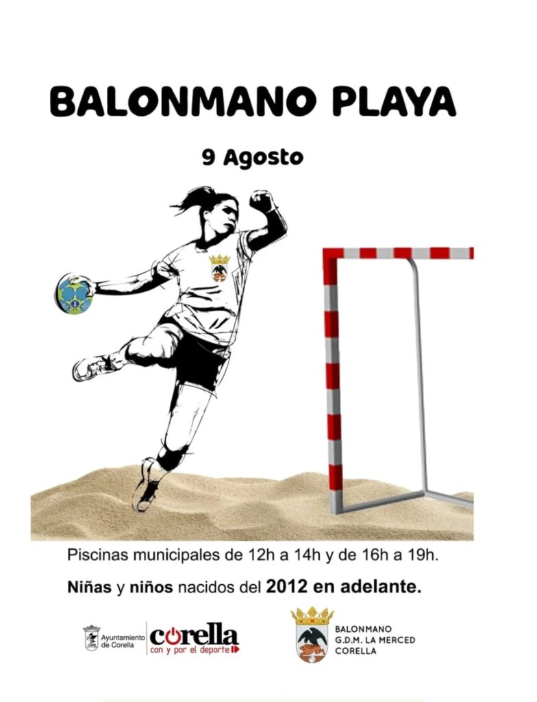 El club Balonmano G.D.M. La Merced Corella en colaboración con el Ayuntamiento de Corella, organiza una jornada de Balonmano Playa dirigida a niñas y niños nacidos a partir del año 2012, con el objetivo de fomentar el deporte, la convivencia y la diversión durante el verano.