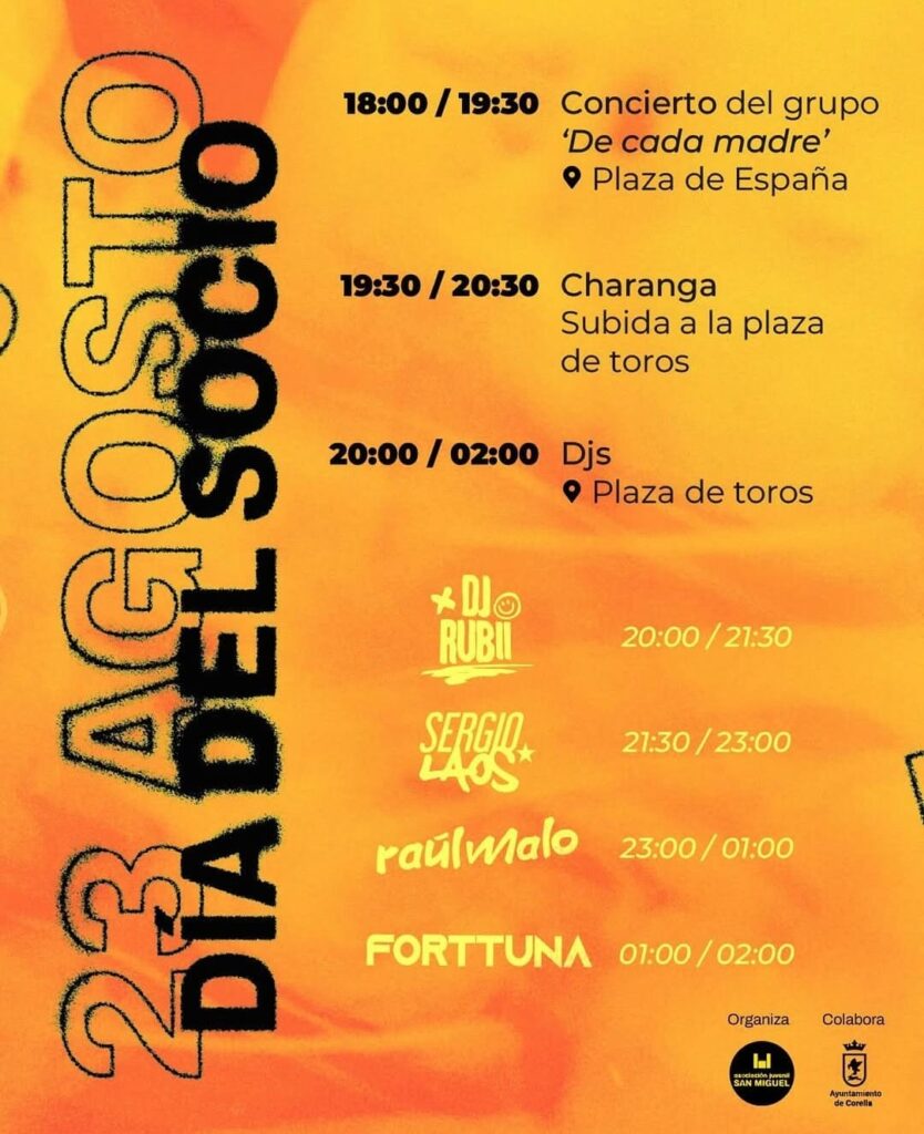 La localidad de Corella se vestirá de fiesta el próximo sábado 23 de agosto para celebrar el Día del Socio 2025, una cita organizada por la Asociación Juvenil San Miguel con la colaboración del Ayuntamiento de Corella.
