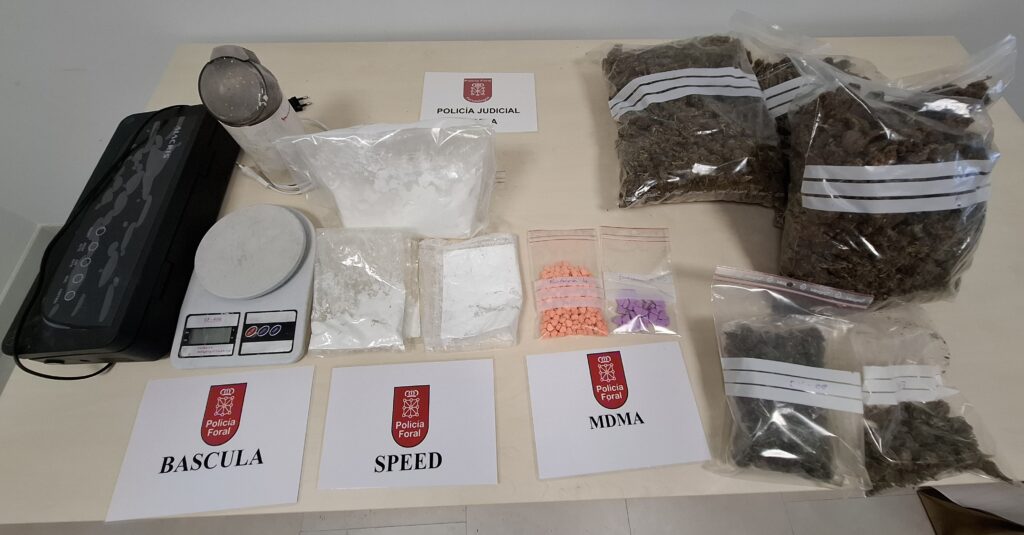 Una vez solicitada al juzgado correspondiente la ampliación del registro domiciliario, los policías se incautaron de sustancias tales como un Kg de anfetamina, 1662 gr de marihuana, 287 pastillas de MDMA, así como de diferentes evidencias compatibles con la comisión del delito de tráfico de drogas – báscula de precisión, envasadora al vacío, molinillo con restos de sustancia, bolsas de vacío…-.