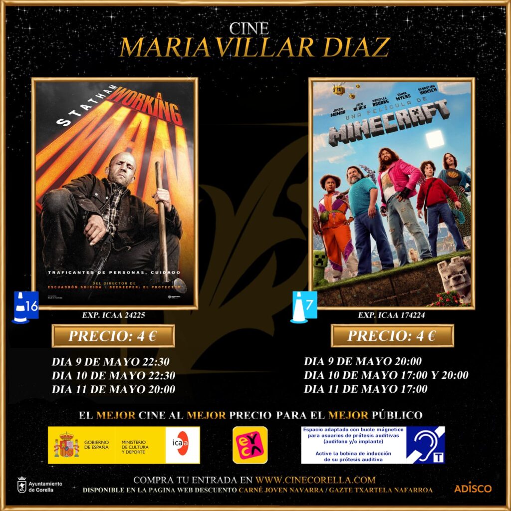 Pero no todo será adrenalina. Para quienes buscan una opción más familiar o simplemente quieren divertirse, “Minecraft: La película” aterriza con su peculiar universo de cubos y aventuras. Con Jack Black y un reparto lleno de sorpresas, esta comedia para mayores de 7 años propone una experiencia colorida, imaginativa y perfecta para compartir en familia. Los pases están programados para el viernes a las 20:00, el sábado a las 17:00 y 20:00, y el domingo a las 17:00. Las entradas ya pueden adquirirse en la web www.cinecorella.com, con descuentos disponibles para jóvenes que dispongan del Carné Joven Navarra.