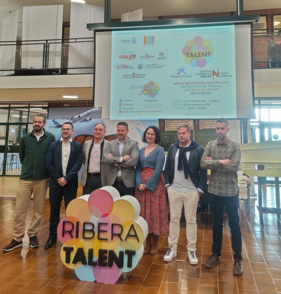 El Servicio Navarro de Empleo-Nafar Lansare (SNE-NL) ha participado esta semana en la apertura de la nueva edición de la feria de empleo y emprendimiento Ribera Talent en Tudela, organizada por Matukio y el Ayuntamiento de Tudela. La feria reúne a 34 empresas y entidades con ofertas laborales en distintos sectores en el CIP ETI cuyo objetivo principal es fomentar el empleo, el talento y el emprendimiento en Tudela y en el conjunto de la Ribera de Navarra, facilitando el contacto directo entre empresas y personas en búsqueda activa de trabajo.