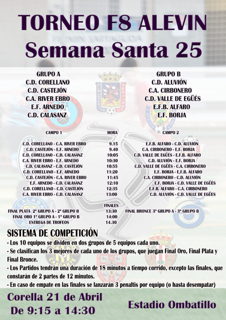 Torneos en Corella el lunes 21 de abril: por la mañana, categoría alevín; por la tarde, categoría benjamín.