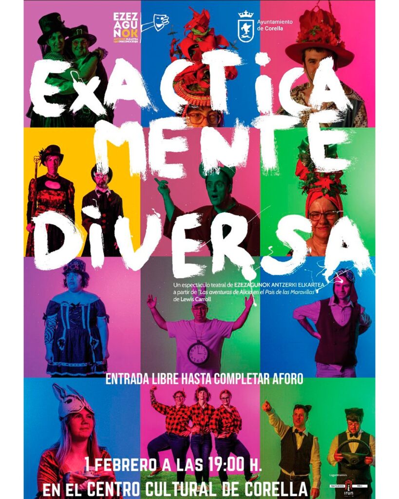 El próximo 1 de febrero de 2025, el Centro Cultural de Corella se transformará en un escenario de fantasía y reflexión con el estreno de “Exácticamente Diversa”, una obra teatral producida por Ezezagunok Antzerki Elkartea. Inspirada en la inmortal “Alicia en el País de las Maravillas” de Lewis Carroll, esta representación promete llevar al público en un viaje introspectivo de superación personal, explorando la búsqueda de sentido en la existencia a través de una serie de acontecimientos y personajes tanto ficticios como reales.