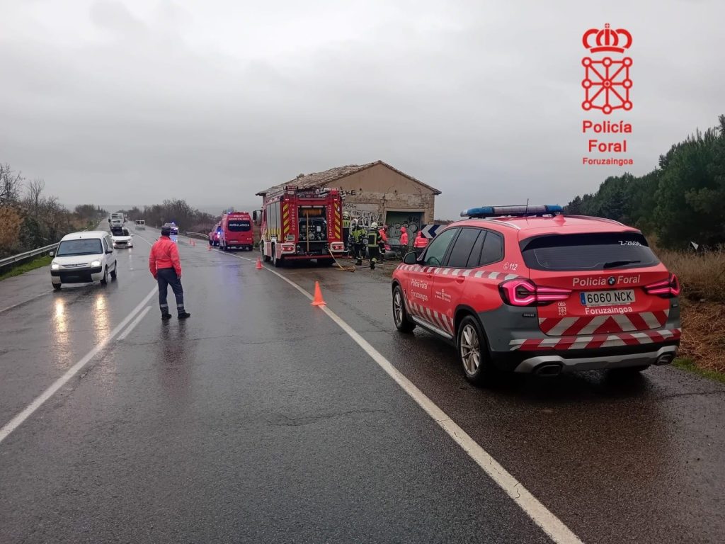 El Centro de Gestión de Emergencias de SOS Navarra 112 ha recibido aviso del siniestro a las 10:15 horas del viernes y ha movilizado a lugar de los hechos a efectivos de bomberos del parque de Tudela, una ambulancia de soporte vital avanzado (medicalizada) y a patrullas de Seguridad Vial de la comisaría de la Policía Foral de Tudela.