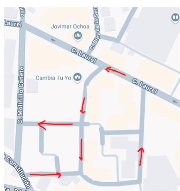 A continuación, se muestra un mapa con la distribución actual de la circulación en estas calles