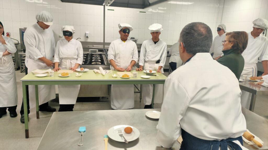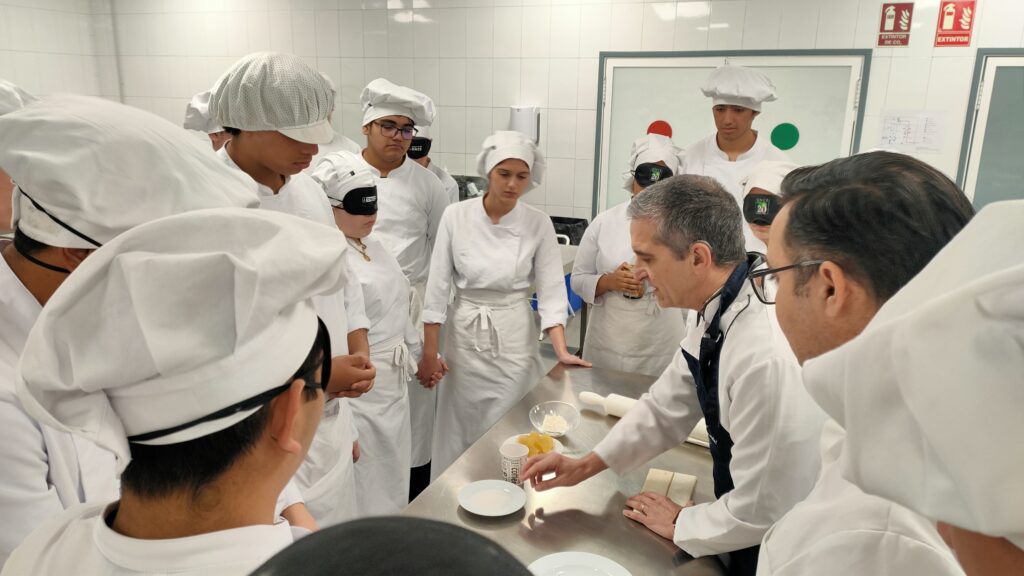 El evento incluyó un taller práctico de cocina a ciegas, donde los estudiantes tuvieron la oportunidad de aprender a elaborar herraduras de hojaldre y cabello de ángel, guiados por las técnicas de Rafael. Este taller no solo fue una lección de cocina, sino también un ejercicio de empatía y comprensión hacia las personas con discapacidades sensoriales.