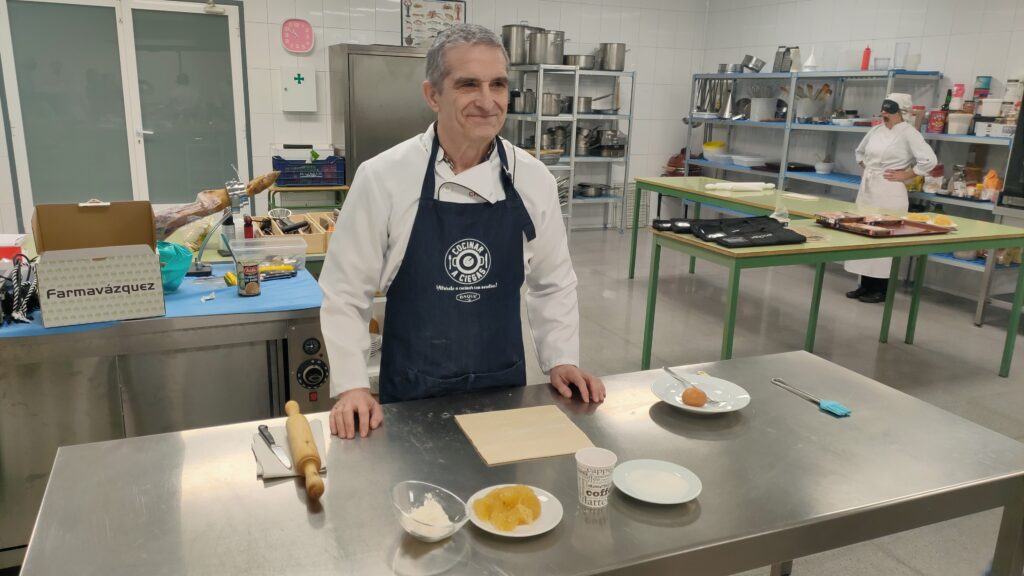 El IES Alhama de Corella vivió una jornada de inspiración y aprendizaje único el pasado 7 de febrero con la visita de Rafael Zapata, un apasionado cocinero con una pérdida progresiva de audición y visión. Acompañado por su esposa Merche, Rafael compartió con los alumnos y alumnas de Formación Profesional Básica (FPB) su experiencia y cómo enfrenta los desafíos diarios debido a su condición.