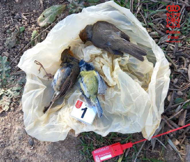 Agentes de la Brigada de Protección Medioambiental de la Comisaría de Tudela tuvieron conocimiento de la posible utilización de artes prohibidas para la caza de pajarillos. En inspecciones realizadas en el término de “Los Postigos” se localizaron entre olivos ocho de estos cepos. Se identificó a un varón de 82 años que supervisaba las “posturas” y recogía cinco de estos pajarillos ya muertos. Se le intervinieron un total de 26 cepos y 5 aves.