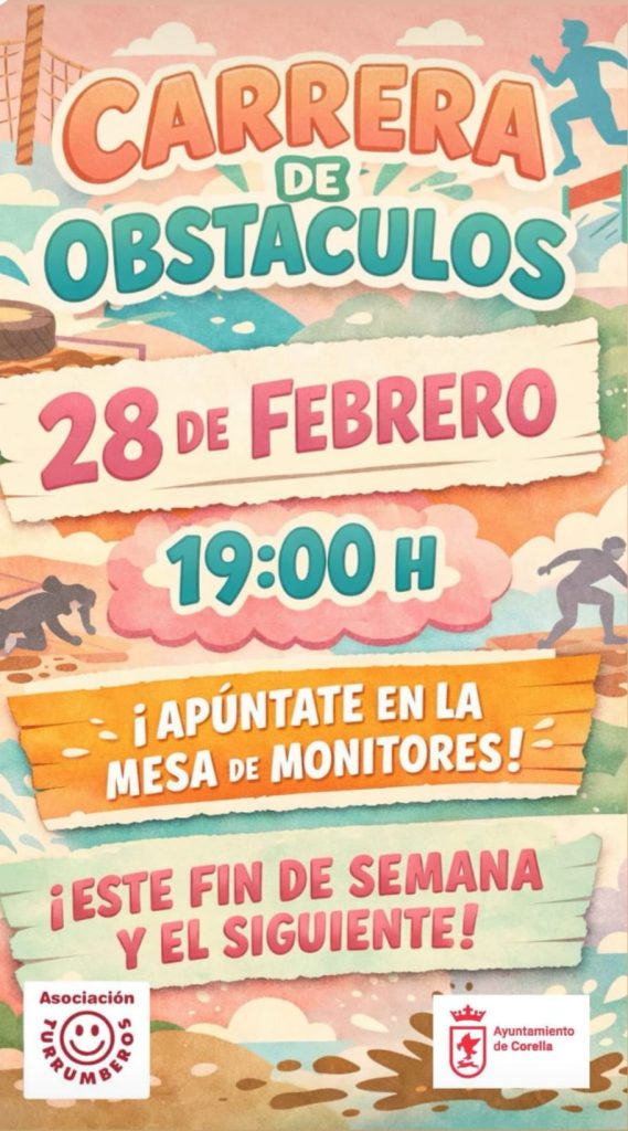 La Asociación Turrumberos de Corella ha anunciado la celebración de una nueva actividad lúdico-deportiva dirigida a la juventud del municipio: una carrera de obstáculos que tendrá lugar el próximo 28 de febrero a las 19:00 horas.
