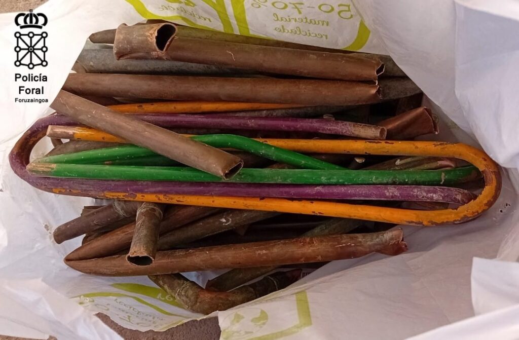 En Cintruénigo se imputaba a una persona un delito de robo con fuerza ocurrido en una instalación eléctrica de Cascante, cuando se interceptaba a un hombre intentando vender en una chatarrería 157 kg de restos de cobre, coincidentes en forma, tamaño y colores con material denunciado como sustraído (cable pelado de diferentes grosores y varillas).