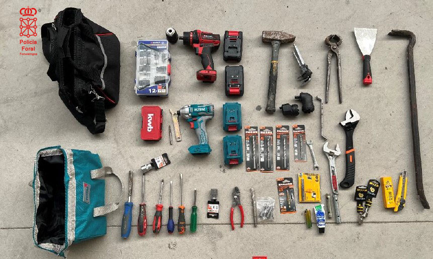 Seis detenidos por delitos CONTRA EL PATRIMONIO. En Mutilva eran detenidas -gracias a la colaboración ciudadana- dos personas por un robo con fuerza en una bajera, a la que accedieron rompiendo la puerta en busca supuestamente de dinero. A los detenidos se les incautó diversa herramienta, así como útiles para la comisión de delitos contra el patrimonio (además de olvidar sus teléfonos móviles en la escena del robo).
