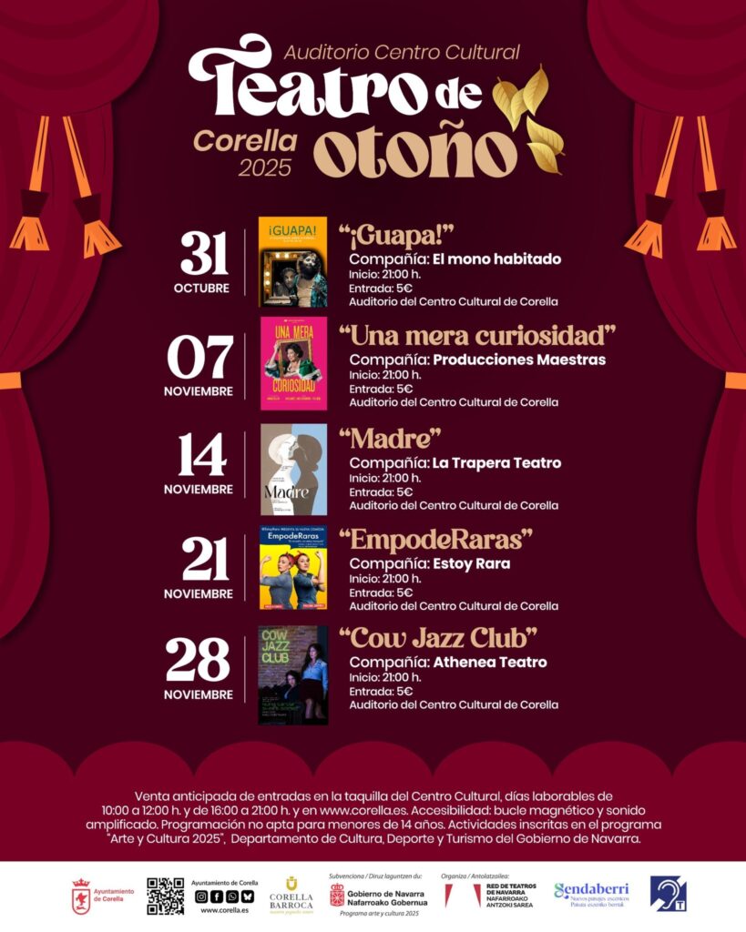 Organizado por el Ayuntamiento de Corella, con la colaboración del Gobierno de Navarra, la Red de Teatros de Navarra y Corella Barroca, el ciclo forma parte del programa “Arte y Cultura 2025” del Departamento de Cultura, Deporte y Turismo del Gobierno de Navarra, consolidándose como una de las citas culturales más esperadas del otoño en la ciudad.