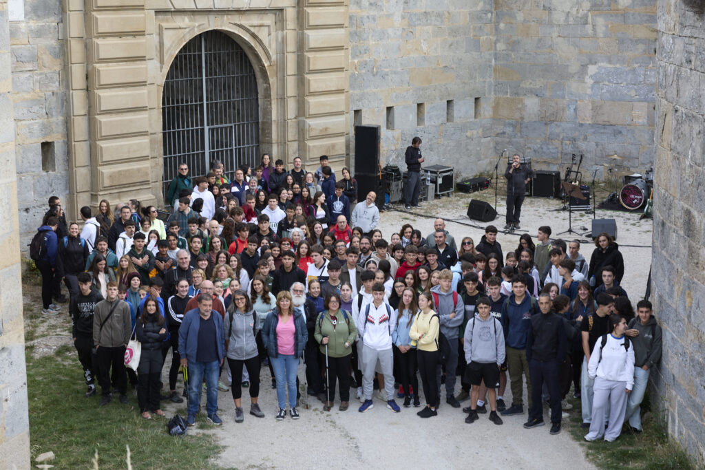 “Y, sobre todo, os pido que cuando volváis a vuestras casas, habléis de lo que habéis conocido. Habléis con vuestras familias, con vuestros amigas y amigos. Y contéis que lo que aquí se produjo, no tiene que volver a producirse. Y que es necesario que plantéis cara con el recuerdo y la memoria a los bulos, las noticias falsas o ‘fake news’ y a las políticas negacionistas y revisionistas de la ultraderecha”, ha dicho Ollo en el inicio del programa en el Fuerte de San Cristóbal. Este espacio será declarado próximamente Lugar de la Memoria por ser utilizado como cárcel franquista y del que el 22 de mayo de 1938 huyeron 795 presos. De ellos, 206 fueron asesinados en su huida, 14 ejecutados más tarde y el resto, fueron capturados y devueltos a la prisión. Solo tres lograron alcanzar la frontera francesa.